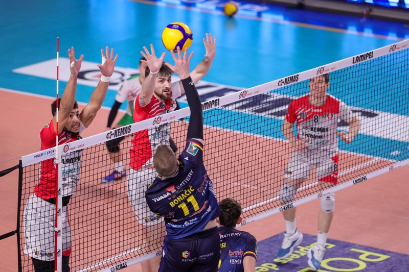 1set. A segnare il 10-7, massimo vantaggio in avvio per la Kemas Lamipel, è Matheus Motzo. Breuning contenuto a muro, sulla rigiocata a segno Maiocchi, 11-7. Errore Breuning, poi ci pensa Bonacic 12-8. Ancora Breuning per il 13-10. Ace di Vigil Gonzalez con una battuta spin, poi bomba di Motzo per il 17-11. Secondo time out per il coach ospite Ortenzi. Al rientro, ancora Truocchio dal centro, poi Vigil Gonzalez: Coscione ispiratissimo si dimostra sempre molto propositivo con i primi tempi. Bonacic ottiene il cambiopalla ma Breuning la mette ancora fuori dai nove metri, seppur di poco. Errore di Maiocchi da seconda linea ed ace di Bonacic, Grottazzolina si avvicina e coach Mastrangelo chiama il primo time-out. Pipe di Maiocchi ad evitare le assistenze a muro proposte dagli ospiti. Errore di Motzo, poi il muro marchigiano prende Colli: 23-21 e secondo time out di Mastrangelo. Esce bene la ricezione di Morgese e Coscione si affida a Truocchio: 24-21, il primo set point lo annulla Breuning, sul secondo è letale Maiocchi.