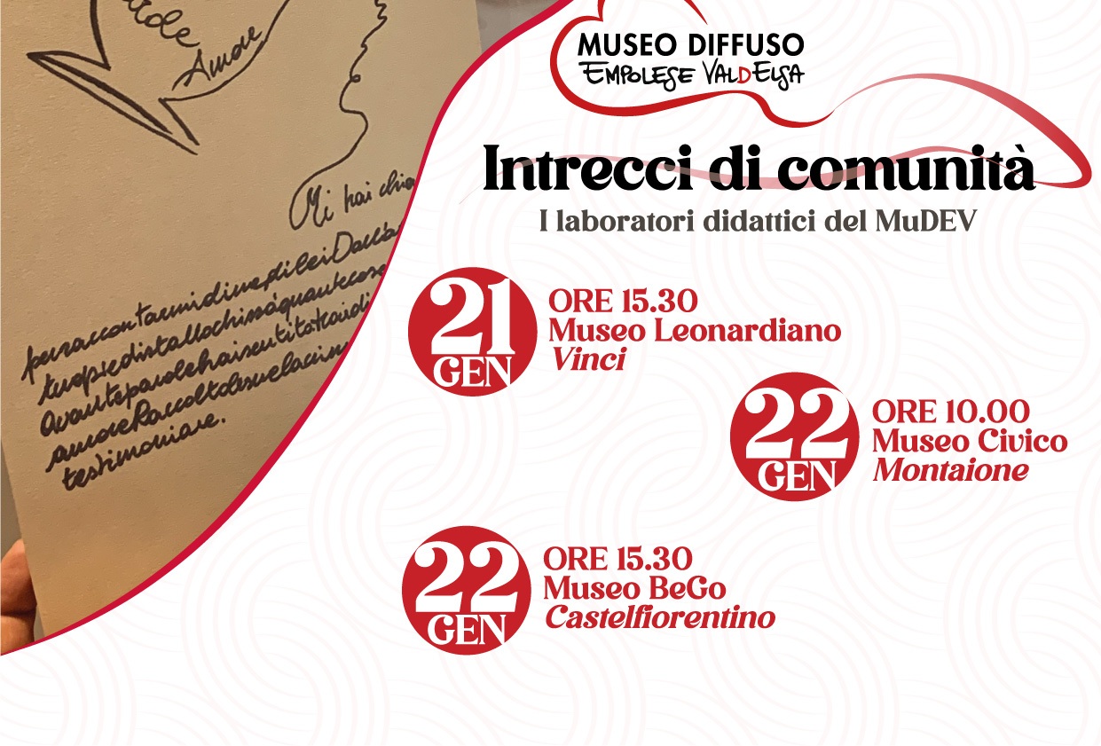 Ultimo fine settimana con “Intrecci di comunità |Trovare legami”, l’iniziativa promossa dal MuDEV - Sistema museale Museo Diffuso Empolese Valdelsa, che da dicembre si snoda in un viaggio a più tappe per prendere coscienza del museo come spazio di comunità in cui ritrovare anche la propria storia personale.