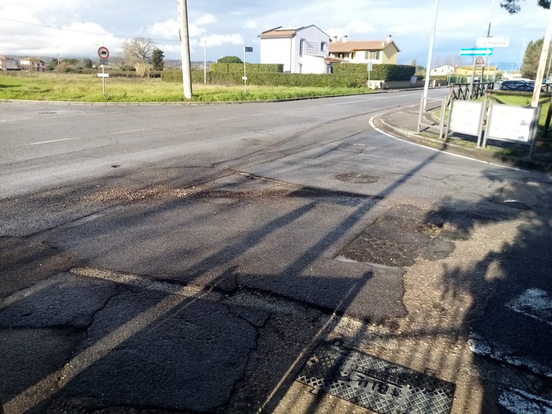Ad oggi purtroppo la situazione non è cambiata e continuiamo a vedere per le nostre strade buche e tracce mal riprese, che costituiscono non soltanto un pericolo per la circolazione di auto e soprattutto cicli e motocicli, ma anche un pericolo per la conservazione delle strade, che proprio con le piogge e le ghiacciate, tendono a rovinarsi maggiormente aggravando la stabilità e la durata dei manti stradali, a tutto danno della sicurezza, della viabilità e delle casse comunali.