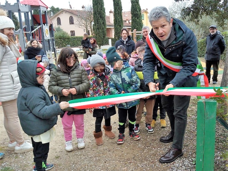 Inaugurata l'area a verde Madonna dei bimbi di Cigoli, alla presenza di una classe della scuola materna e una della prima "Cardi" di Cigoli, uno spazio che adesso può vantare attrezzature di ultima generazione, in grado di abbattere completamente le barriere architettoniche. Un intervento da circa 50mila euro voluto dall'amministrazione comunale e inserito in un progetto più ampio che prevede il censimento di tutte le aree a verde del territorio comunale, con una priorità negli interventi da realizzare. "Abbiamo avviato uno studio per la riqualificazione delle aree verdi comunali attrezzate e attrezzabili - spiegano il sindaco di San Miniato Simone Giglioli e l'assessore ai lavori pubblici Marzia Fattori -. La riqualificazione degli spazi già attrezzati, prevede una serie di interventi che hanno l’obiettivo di migliorarne non solo la sicurezza e la fruibilità, ma anche quella di avviare una straordinaria manutenzione degli arredi rinnovando, adeguando ed incrementando le strutture ludiche. La gestione di questi spazi, comprende attività di manutenzione ordinaria e straordinaria, e, la ricognizione del loro stato di usura, ci ha consentito, nel 2020 e nel 2021, di rimuovere alcune strutture, vecchie e non più a norma, grazie alle quali abbiamo così individuato le priorità e proceduto con la destinazione delle risorse per l'attuazione dell'intervento che ha interessato l'area di Cigoli".