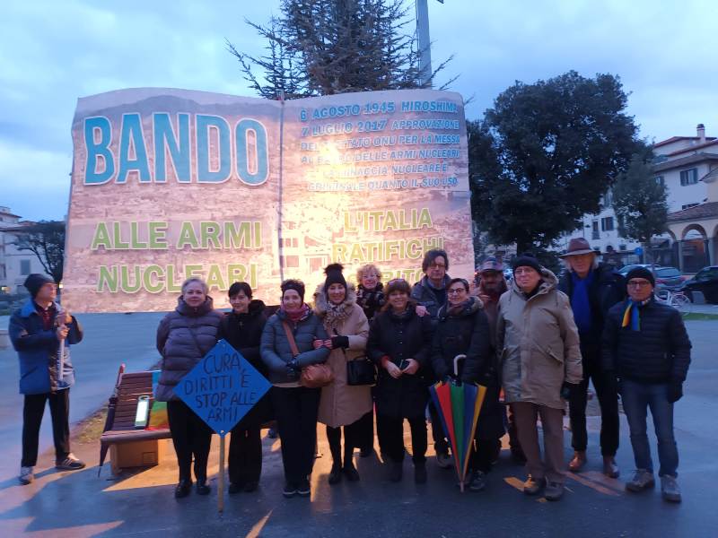 Nonostante il tempo non clemente, una trentina di cittadine e cittadini empolesi si sono ritrovate domenica 22 gennaio tra le 17 e le 19 al presidio presso la tenda della Pace in piazza della Vittoria ad Empoli, per celebrare insieme il secondo anniversario della entrata vigore del trattato ONU di Proibizione delle armi nucleari (TPAN).