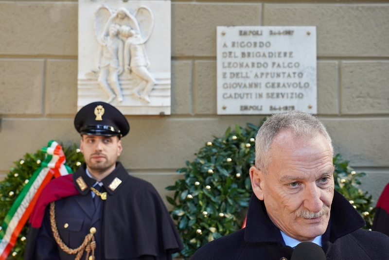 "L'uccisione del brigadiere Leonardo Falco e dell'appuntato Giovanni Ceravolo e il ferimento di Arturo Rocca, anche lui appuntato, tutti in forza alla polizia di Stato - sottolinea l'assessore alla Legalità del Comune di Empoli, Massimo Marconcini - è uno degli avvenimenti che più ha segnato la storia della nostra città. È accaduto il 24 gennaio 1975, ero un bambino e quei gravissimi fatti fanno parte dei miei ricordi, tanto che da cittadino cerco sempre di essere presente alla cerimonia commemorativa. Credo sia importante rendere omaggio ai due caduti e a Rocca, rimasto gravemente ferito ma sopravvissuto a quell'agguato, e alle loro famiglie. E credo sia fondamentale partecipare anche per dire grazie a chi, da servitore dello Stato, ha perso la vita per difendere la nostra democrazia. Per questo oggi ho rappresentato con orgoglio l'amministrazione comunale in questa occasione, con la convinzione che quanto accaduto 48 anni fa debba restare vivo nella memoria di ognuno".