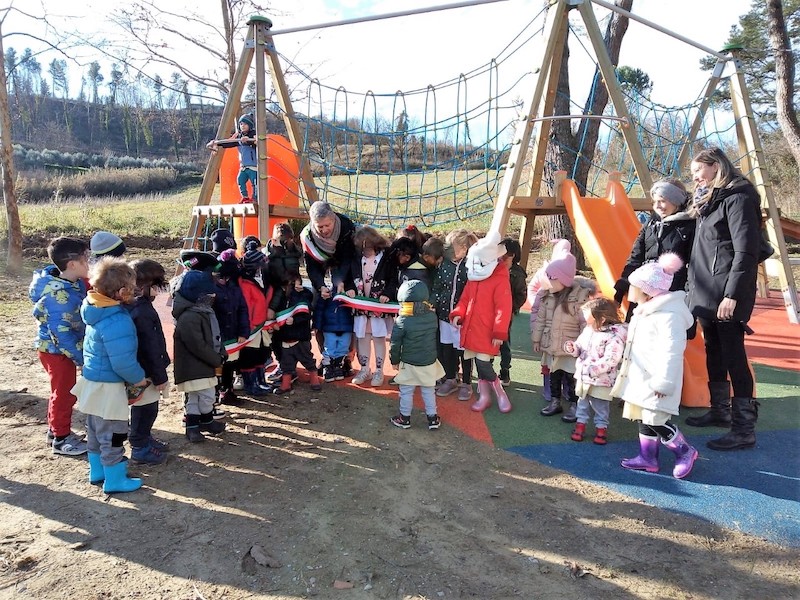 Inaugurata una nuova area a verde in via Vespucci a La Serra, alla presenza dei bambini e delle bambine della scuola materna di Balconevisi e di una classe della primaria “Collodi” de La Serra, uno spazio che adesso è stato completamente attrezzato. Un intervento da circa 50mila euro voluto dall’amministrazione comunale e inserito, come quello di Cigoli, nel più ampio progetto di censimento di tutte le aree a verde del territorio comunale, con una priorità negli interventi da realizzare tra quelli di recupero e quelli di realizzazione ex novo, come in questo caso. "In quest'area, che prima di oggi non era attrezzata, è stato necessario, per prima cosa, abbattere alcune piante di pino e rimodellare l'intera superficie, in modo da avere uno spazio in totale sicurezza - spiegano il sindaco Simone Giglioli e l'assessore ai lavori pubblici Marzia Fattori -. Da qui abbiamo poi creato percorsi e spazi per la sosta, e inserito nuove attrezzature per il gioco in legno e arredi urbani di ultima generazione". L'obiettivo principale, oltre alla riqualificazione, era sicuramente quello di attrezzare questo spazio abbattendo le barriere architettoniche provvedendo alla realizzazione di pavimentazione in gomma antitrauma sotto le attrezzature per i giochi all’aperto, in modo da non ostacolare gli spostamenti dei soggetti in carrozzina all’interno dell’area ricreativa. “I giochi e le attrezzature installate sono realizzate in legno e acciaio, nel pieno rispetto della normativa attuale – concludono i due amministratori -. Dopo Cigoli, il Comune di San Miniato si dota di un'altra area che diventa un ulteriore spazio a verde riqualificato, con un’attenzione precisa ai bambini e alle bambine disabili che potranno quindi utilizzare questi giochi in sicurezza. Il recupero di questi spazi è fondamentale perché consente un incremento dei momenti di socialità, che avvengono proprio grazie alla frequentazione di questi luoghi, e garantisce l'accessibilità completa a tutti".