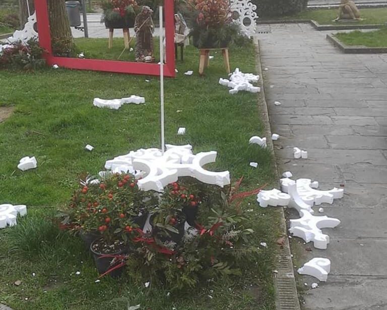 Lo scorso 31 dicembre, durante i festeggiamenti dell’ultimo dell’anno, tra la mezzanotte e l’una, come dimostrano le immagini, sono stati danneggiati gli addobbi presenti nell’area della scultura del gallo nero, peraltro molto apprezzati, dove erano allestiti l’albero e il presepe. L’ammontare del danno è stato stimato per 450 euro. Le telecamere hanno ripreso le due persone responsabili alle quali, a seguito delle indagini tradizionali, che sono fondamentali per comprovare il riconoscimento, è stata applicata la sanzione amministrativa prevista per violazione del regolamento comunale e addebitato il risarcimento del danno.