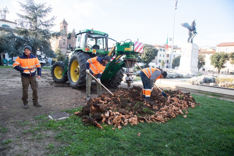 Due nuovi alberi in piazza della Vittoria. Nella mattinata di oggi, venerdì 27 gennaio 2023, è stata eseguita la messa a dimora delle piante, a seguito dell'abbattimento di due alberi 'morti' e non più recuperabili, avvenuto nel mese di dicembre 2022. Le piante abbattute, un cedro dell'Atlante e un leccio, si trovavano all'interno dell'aiuola 'lato' via Curtatone e Montanara e lì sono state collocate le nuove, delle stesse specie.