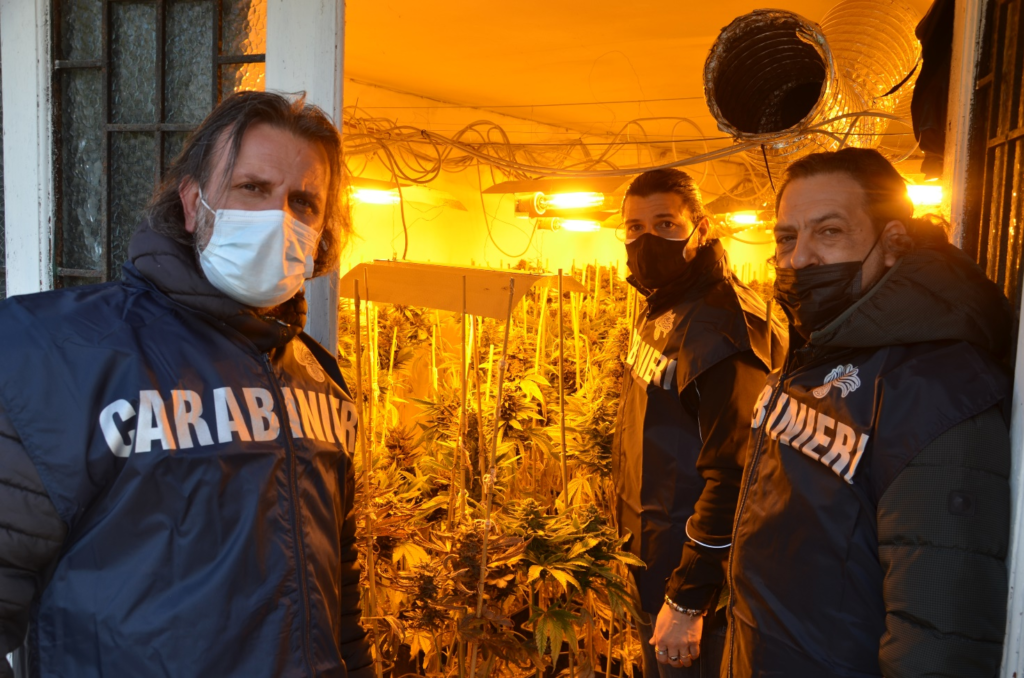 In un capannone di Montemurlo, nel Pratese, sono state trovate tre persone (un 45enne, un 48enne ed un 56enne cinesi disoccupati, domiciliati a Prato e Montemurlo) mentre gestivano un sito da 546 piante di cannabis indica in vaso e altre 780 pronte da invasare. I carabinieri di Prato e di Montemurlo ieri hanno individuato un impianto d’irrigazione e fertilizzazione che provvedeva a irradiare le piante con 88 lampade da 600w alimentate con allaccio abusivo alla rete elettrica.