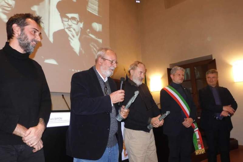 Premio Vittorio Taviani (una statua in bronzo dell’artista Marcello Scarselli) consegnato dal sindaco di San Miniato Simone Giglioli e dal presidente del Centro Cinema Taviani, Carlo Baroni, insieme ai figli di Vittorio, Giuliano e Francesca (in sala c’era anche Ermanno Taviani, figlio di Paolo) anche ad Umberto Montiroli, storico collaboratore dei due registi dal 1977 ad oggi: da 'Padre Padrone' in poi, Montiroli ha catturato e fermato le immagini più belle dei set dei Taviani.