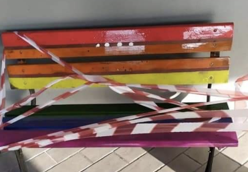 A nemmeno 24 ore dall'inaugurazione della panchina arcobaleno a Agliana, sono arrivati i vandali. È stata staccata la targa commemorativa apposta sulla panchina.