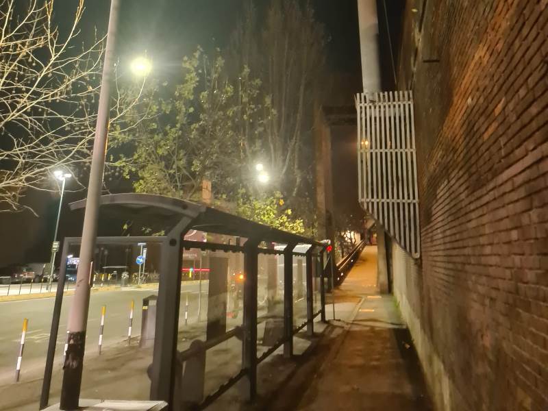 In concerto sono stati aggiunti tre punti luce posizionati su supporti esistenti o provvisori senza opere di scavo. Questo ha consentito di omogeneizzare l'illuminazione in tutta la parte di controviale che accoglie le pensiline di attesa, l'area di sosta dei pedoni e quella dedicata al parcheggio delle due ruote.