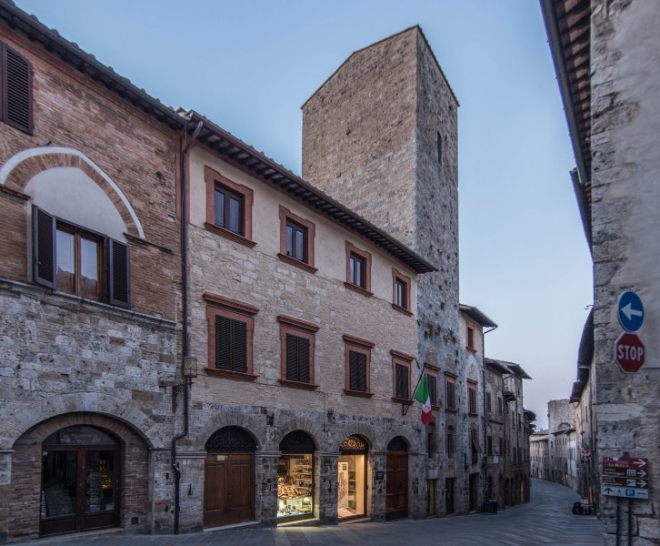 La casa dove, secondo la tradizione, visse gli ultimi anni il famoso autore del Decameron, da un lato, e la dimora alto-borghese di Lydia Campatelli, dall'altro. Entrambe caratterizzate da una torre, fedele ricostruzione dell'originale trecentesca, la prima, e una delle 72 antiche torri di San Gimignano la seconda, adesso idealmente più vicine e più "accessibili" ai visitatori.