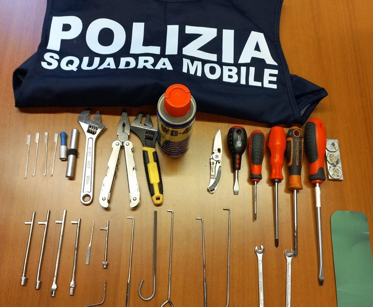 Dentro alle macchine, nei bagagliai, nei portaoggetti, e persino nascosti sotto la marmitta, sono stati infatti trovati numerosi arnesi normalmente utilizzati per lo scasso: cacciaviti, lastre, chiavi, grimaldelli, pinze. Tutto materiale sottoposto a sequestro.