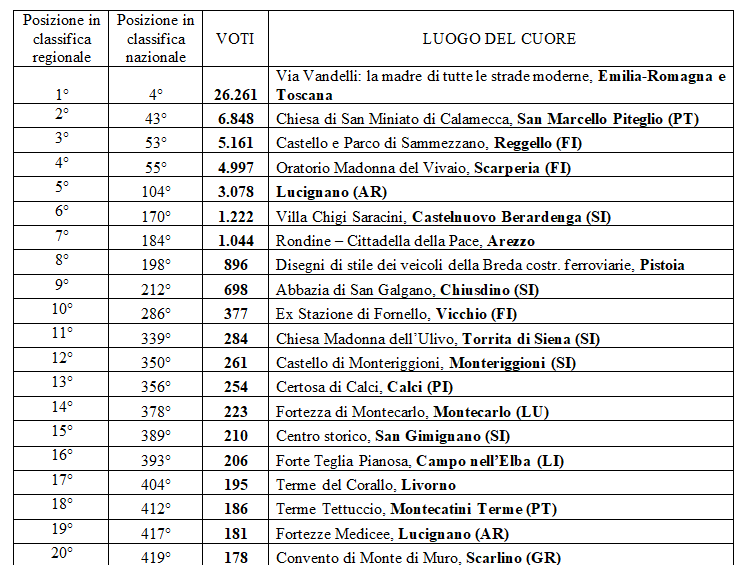 classifica toscana luuoghi cuore Pubblicato il 16 Febbraio 2023 alle 747 × 565 in Via Vandelli tra Toscana e Emilia Romagna al 4° posto dei Luoghi del Cuore Fai Successivo →