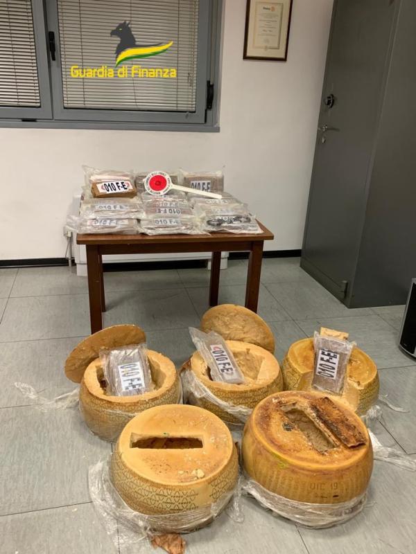 • 25 kg di cocaina purissima rinvenuti, nel mese di giugno 2022, in provincia di Asti, in un furgone diretto in Sardegna e occultati all’interno di 5 forme di formaggio tipo grana padano/parmigiano, appositamente predisposte come carico di copertura.