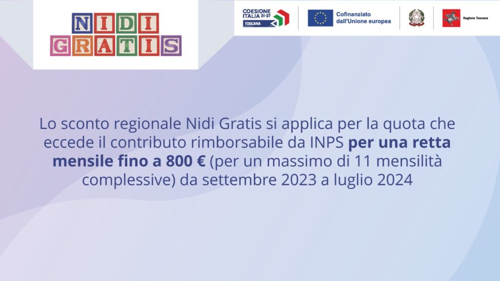 A maggio sarà approvato dalla Regione l’elenco dei nidi presso i quali sarà possibile beneficiare della misura.