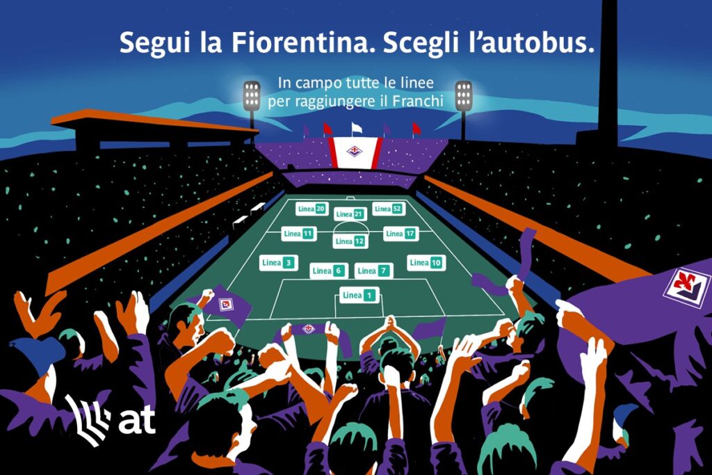 “Segui la Fiorentina. Scegli l’autobus”. Questo il titolo della campagna di comunicazione realizzata da “at” in collaborazione con ACF Fiorentina per incentivare l’utilizzo dei bus da parte dei tifosi che vogliono recarsi allo Stadio per sostenere la squadra viola.