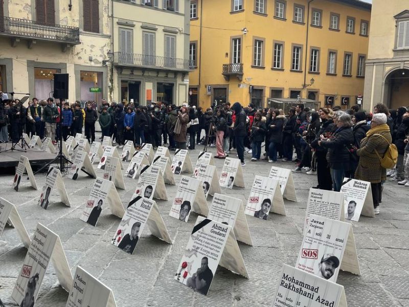 Sono solo alcune delle vittime del regime iraniano, oltre 40 volti sorridenti di ragazze, ragazzi, bambine, bambini che non ci sono più o che sono imprigionati nelle carceri iraniane. I loro ritratti stamani riempivano un lembo della Piazza del Comune di Prato.