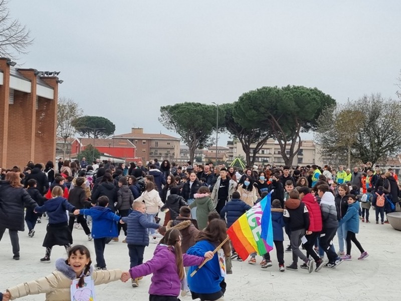 Tutti insieme per dire no alla guerra. Ad un anno dallo scoppio del conflitto in Ucraina, il Comune di Montemurlo ha promosso questa mattina, 24 febbraio, una manifestazione ribadire la contrarietà della comunità montemurlese alla guerra come modalità per risolvere le controversie. A scendere in piazza sono stati gli studenti dell'istituto comprensivo “Margherita Hack” e della scuola paritaria “Ancelle del Sacro cuore” e i rappresentanti di alcune associazioni del territorio. In piazza della Libertà i bambini e i ragazzi hanno portato bandiere arcobaleno, striscioni , poesie e pensieri di pace.