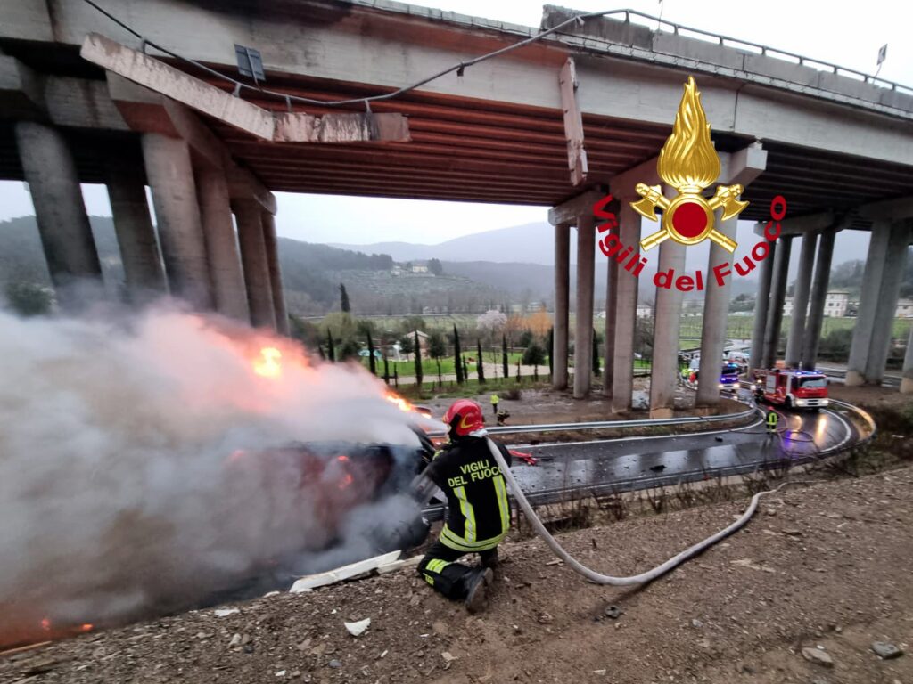 “Questa mattina poco dopo le 7:00, secondo quanto abbiamo potuto ricostruire grazie alle telecamere posizionate sul tratto, un autoarticolato che percorreva l’autostrada A1 in direzione Bologna tra Calenzano e Barberino di Mugello, nell’affrontare una curva, ha prima perso il controllo andando a urtare la barriera di sicurezza sul lato sinistro poi, a seguito dell’impatto, ha invertito rapidamente la sua direzione andando a urtare con elevato angolo di incidenza la barriera di sicurezza posta sul lato destro, abbattendola e cadendo oltre il viadotto. A seguito dell’incidente il mezzo è andato in fiamme” ha ricostruito Matteo Marvogli, Direttore di Tronco di Firenze di Aspi, in un’intervista a Isoradio.