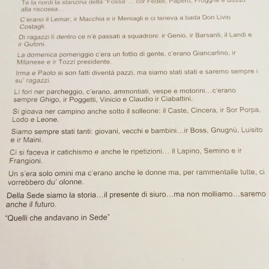 Cosa aspettarsi, dunque, per la Sede? Qualcosa bolle in pentola, a partire dalla poesia che trovate di seguito. A Santa Croce c'è chi vuol fare sul serio per un posto che ha visto venir su decine e decine di persone che ora, da adulte, vogliono 'ricambiare' l'affetto.