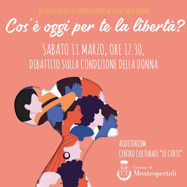 Cos'è oggi per te la libertà? In occasione della Giornata internazionale della donna, a Montespertoli, si rifletterà sul significato della parola libertà. Il dibattito è programmato per sabato pomeriggio (11 marzo, alle ore 17:30) presso l'Auditorium del Centro Culturale "Le Corti". Tutti i cittadini possono partecipare.