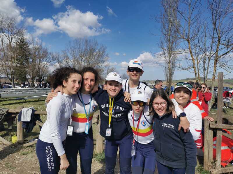 Nel settore canottaggio nella prima regata del 2023 che si è svolta nel Lago di Chiusi lo squadrone del club giallorosso ha aperto le danze subito con la prima medaglia messa in palio vincendo il doppio allievi con Pucci Giovanni e Luzzi Filippo. Poco dopo anche Nacci Laura conquistava una medaglia d’argento nel singolo allievi. Nella categoria ragazzi arrivava un’altra medaglia d’oro con Storace Zoe anche lei sul singolo. Sempre nella categoria ragazzi le gemelle Giovannoni G e Noemi conquistavano una medaglia d’argento. Anche nella categoria cadetti arrivava una medaglia di bronzo con Ademollo Marcello e Leonardo Federici, sempre nella categoria cadetti arrivava un’altra medaglia d’oro con il quattro di coppia con Ademollo Amedeo, Nacci Fabio, Villa Pietro e Gherardini Giorgio. Salendo di categoria arrivava la conferma dell’atleta di punta della Canottieri San Miniato Galluzzi Vittoria, già in azzurro ai mondiali 2022 che in singolo sbaragliava le dirette avversarie prendendosi il podio più alto. Bene anche Federici Alessia, seconda in singolo pesi leggeri, le due atlete poi conquistavano la medaglia d’oro nel doppio under 23.