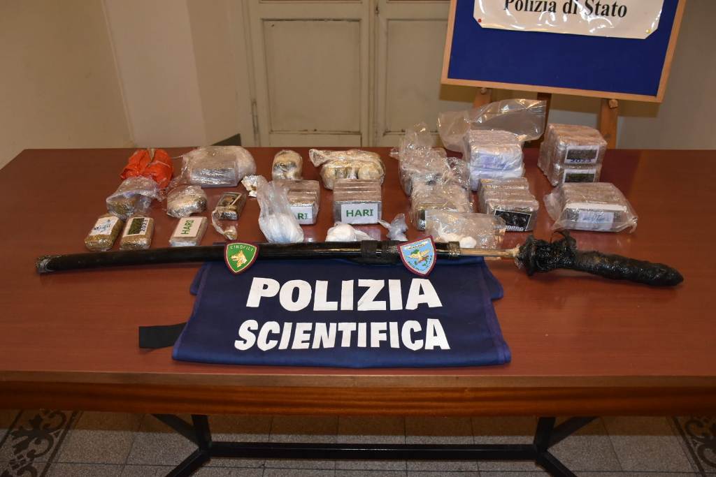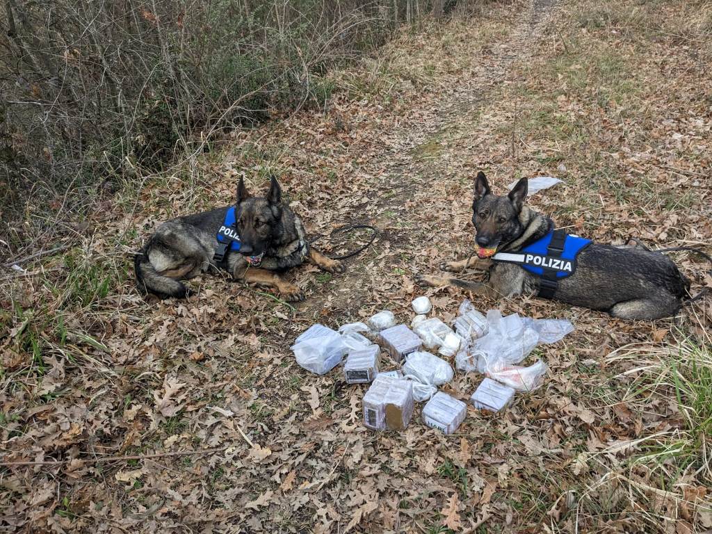 Alla vista della polizia alcune persone straniere si sono rapidamente allontanate. I cani delle unità cinofile, due femmine dal nome Onah ed Eviva, hanno scoperto che sotterrati a 50 cm di profondità c'erano dei panetti di cellophane contenenente la droga, mentre tra la vegetazione era presente anche l'arma bianca.