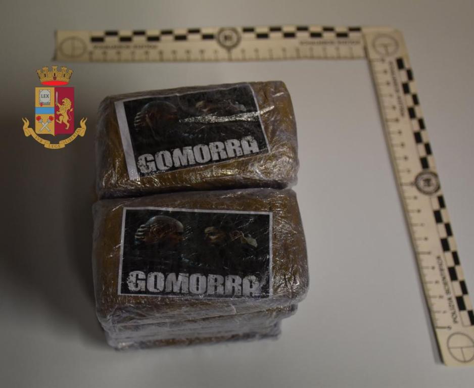 Una katana nascosta tra la vegetazione, 7,8 kg di hashish 'marchiata' con la scritta Gomorra e 150 g di cocaina. Questo il bottino del sequestro della polizia dopo i controlli attivati nei boschi delle Cerbaie (Fucecchio) ieri sera.