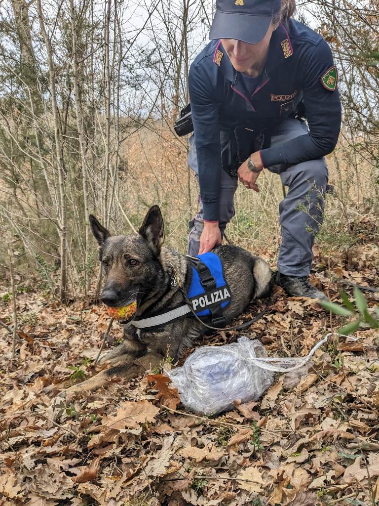 Alla vista della polizia alcune persone straniere si sono rapidamente allontanate. I cani delle unità cinofile, due femmine dal nome Onah ed Eviva, hanno scoperto che sotterrati a 50 cm di profondità c'erano dei panetti di cellophane contenenente la droga, mentre tra la vegetazione era presente anche l'arma bianca.
