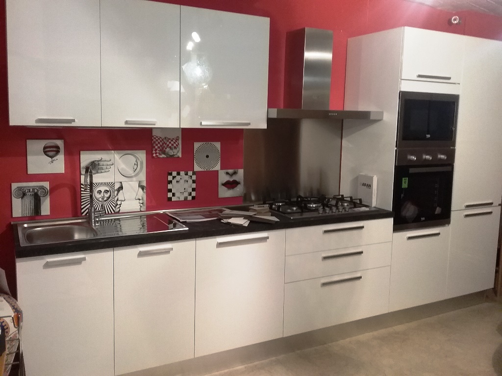 Ad esempio la cucina Marilyn (360 cm) completa di colonna con frigo congelatore, colonna con forno e microonde, cassettiera grande con piano cottura 5 fuochi, lavastoviglie, sotto lavello con lavello inox e miscelatore, pensile scolapiatti, pensile da 60 e cappa arredo è oggi a solo 2.989 euro.