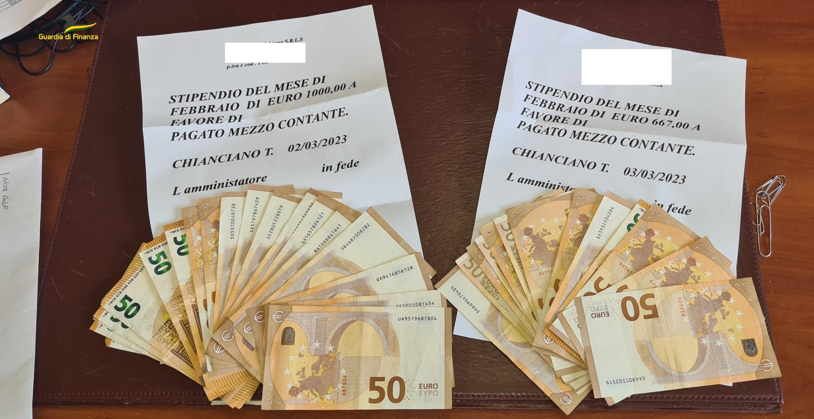Le ulteriori analisi sulla posizione soggettiva dei vari dipendenti dichiarati dalla società, hanno avvalorato il quadro indiziario, rivelando come alcuni dipendenti “fittizi” risultassero percettori di indennità di disoccupazione (in un caso) o di Reddito di Cittadinanza.