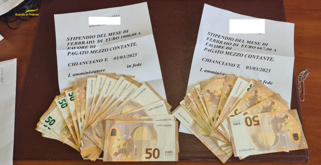 Nell’ambito del controllo non è sfuggito alla Magistratura ed agli investigatori l’ingente numero di lavoratori dipendenti della società, non commisurato alla sua effettiva struttura organizzativa. Una successiva mirata e più penetrante attività ispettiva, in collaborazione con la locale Direzione Territoriale del Lavoro, ha evidenziato che, al mese di maggio 2021, l’ente societario risultava avere alle proprie dipendenze ben 103 cittadini extracomunitari, sparsi su tutto il territorio nazionale e per i quali emetteva regolarmente buste paga, remunerandone in concreto solo 14.