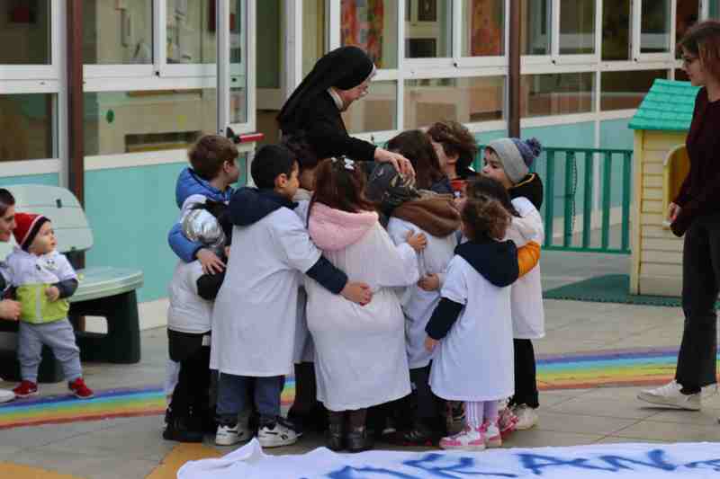 Piccoli alunni e genitori della scuola dell'infanzia Alda Mazzini e del nido Nazareth chiedono che Suor Angela non venga trasferita: "È una figura fondamentale"