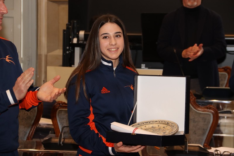 Nel corso della seduta del Consiglio Comunale di oggi, martedì 14 marzo, il sindaco di Pisa, Michele Conti, ha consegnato un riconoscimento a Vittoria Pinna del Club Scherma Pisa “Antonio Di Ciolo”, che nel mese di febbraio ha conquistato il titolo di campionessa europea di fioretto cadette (under 17) a Tallinn. Lo scorso anno l’amministrazione comunale aveva già premiato la giovane atleta che nel 2022 si era aggiudicata la medaglia d’oro nel fioretto cadette ai Campionati Italiani Cadetti e Giovani andati in scena a Catania.