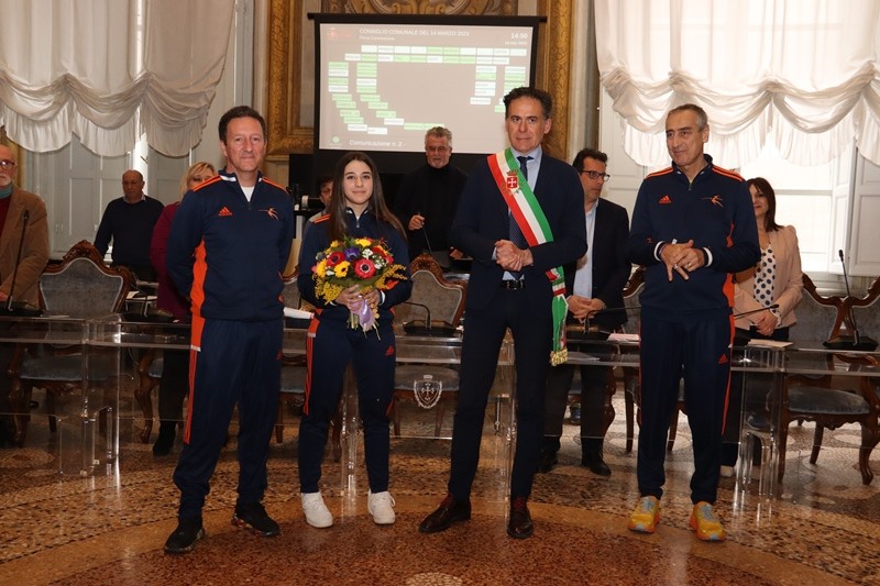 Nel corso della seduta del Consiglio Comunale di oggi, martedì 14 marzo, il sindaco di Pisa, Michele Conti, ha consegnato un riconoscimento a Vittoria Pinna del Club Scherma Pisa “Antonio Di Ciolo”, che nel mese di febbraio ha conquistato il titolo di campionessa europea di fioretto cadette (under 17) a Tallinn. Lo scorso anno l’amministrazione comunale aveva già premiato la giovane atleta che nel 2022 si era aggiudicata la medaglia d’oro nel fioretto cadette ai Campionati Italiani Cadetti e Giovani andati in scena a Catania.