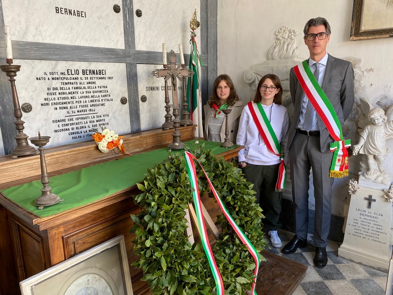 Oggi pomeriggio il sindaco di Montepulciano Michele Angiolini, assieme alla Presidente dell’ANPI locale Irene Bettollini, alcuni rappresentanti della medesima associazione, alla Sindaca del Consiglio Comunale dei Ragazzi Ludovica Gobbi e all’assessore alla cultura Lucia Musso, hanno ricordato Elio Bernabei, ingegnere nato a Montepulciano il 29 settembre del 1907, una delle 335 vittime del brutale eccidio nazifascista delle Fosse Ardeatine, avvenuta il 24 marzo del 1944 a Roma, per mano delle truppe tedesche. Per l’occasione sono state deposte due corone, una all’inizio di via Bernabei e l’altra nella cappella di famiglia al cimitero di S.Chiara.