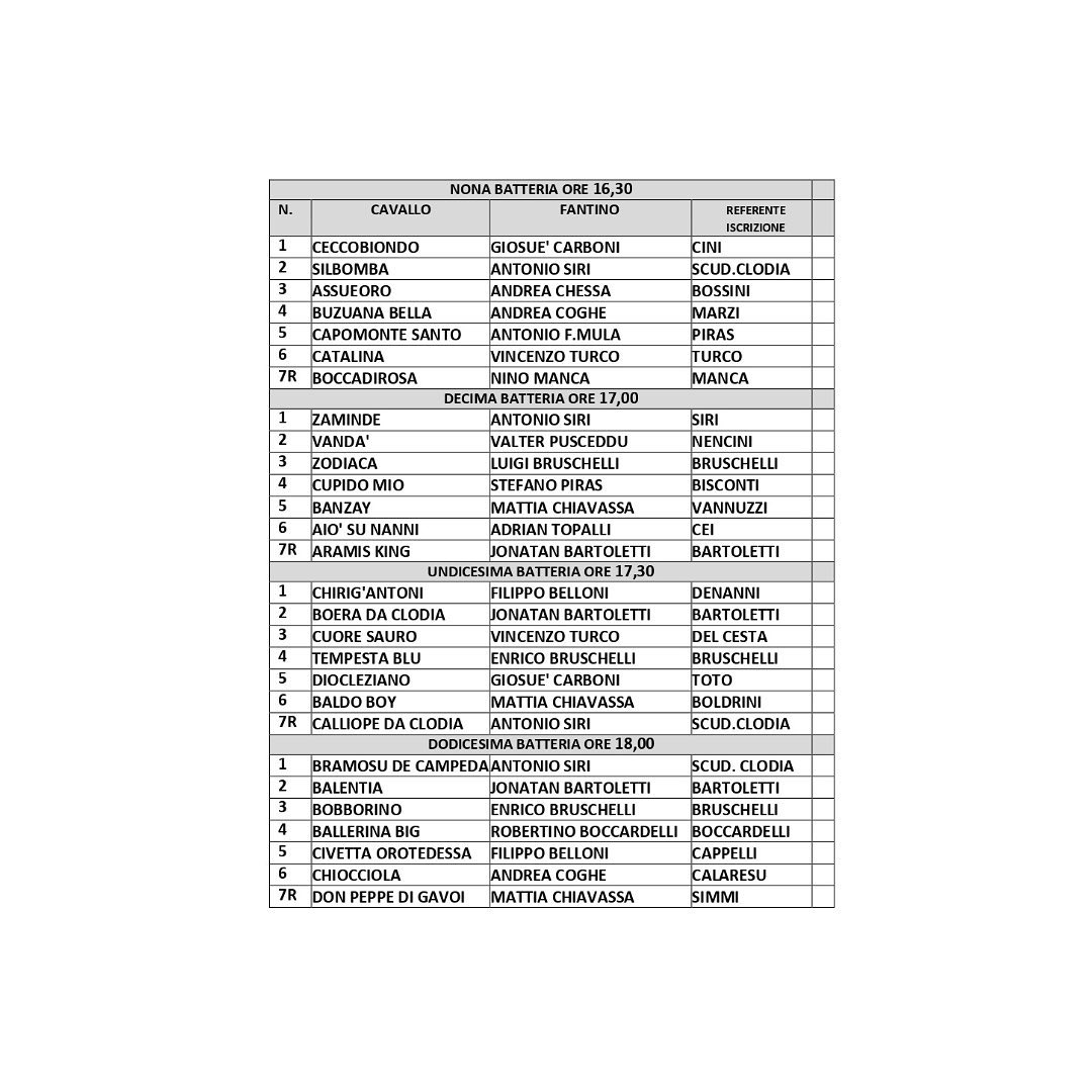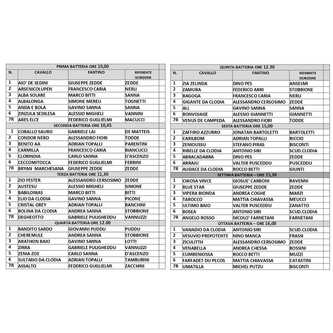 Sono ufficiali le batterie della prima sessione delle Corse di Primavera, in programma domenica prossima 26 marzo nella Buca d'Andrea. In pista 84 cavalli, suddivisi in 12 batterie composte da 7 cavalli ciascuna. Al mattino si svolgeranno 5 batterie, di cui la prima alle ore 10 e l'ultima alle 12.30.