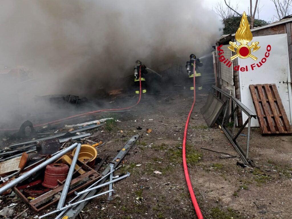 Incendio di baracche e masserizie accumulate ancora nell'ex campo nomadi di via dell'Argingrosso a Firenze. Dalle 11 di stamani i vigili del fuoco di Firenze Ovest sono impegnati per separare il materiale. Presente anche il personale da Prato con un escavatore per rimuovere oggetti incendiati.