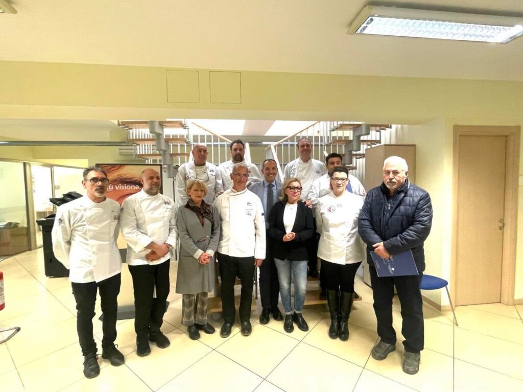 Presenti alla conferenza stampa di presentazione per l'Associazione Cuochi Pisani Veronica Vanni (vicepresidente), Francesco Caporrino (tesoriere), Rocco Fusaro (segretario), Daniele Astarella (responsabile compartimento giovani), Giovanni Costanzino (responsabile Istituto Alberghiero Matteotti di Pisa), Antonio Geri (aiuto compartimento giovani Istituto Alberghiero Niccolini di Volterra), lo chef Francesco Panullo.