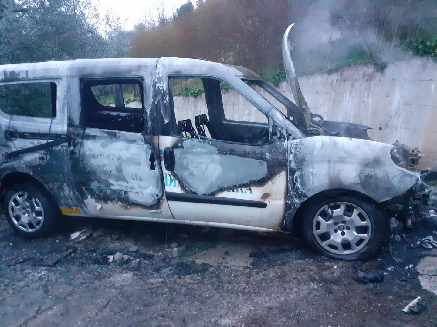 Si tratta di un mezzo per il trasporto di persone con disabilità, non di un'ambulanza. Si pensa che alla base dell'incendio ci sia stato un surriscaldamento del motore. Le fiamme hanno avvolto subito il veicolo e lo hanno danneggiato. Sul posto i vigili del fuoco.