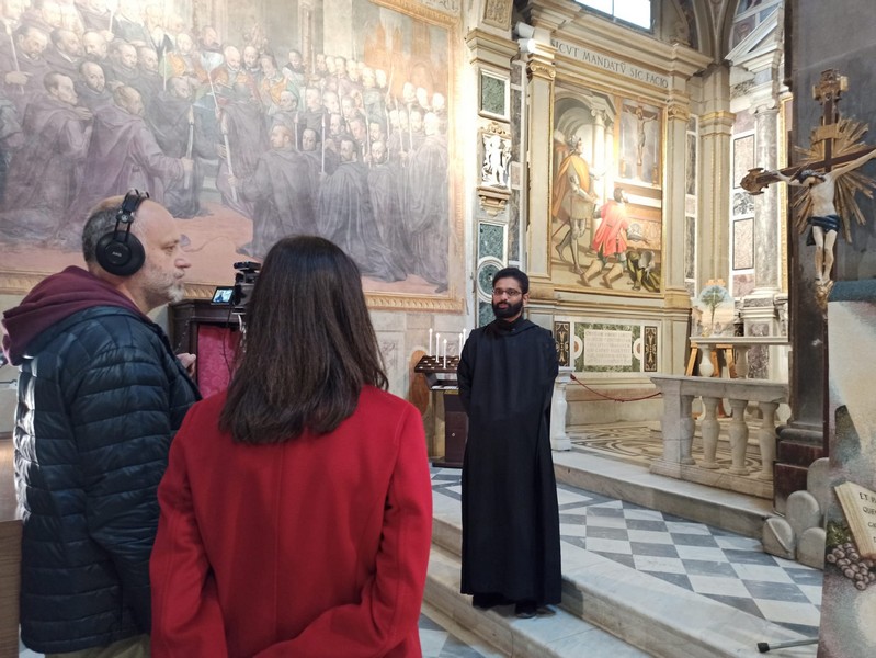 “Oltre al refettorio, abbiamo avuto il piacere di rivelare alle telecamere l’antichissima cucina monumentale dell'Abbazia dove sono esposte alcune delle prime forchette giunte in Italia nel XVII secolo - rivelano i monaci vallombrosani - l'ampio chiostro, tutto il giardino esterno progettato secondo il tipico impianto all'italiana”. Altra tappa del tour televisivo condotto anche da Fra’ Matteo, la chiesa abbaziale di San Michele Arcangelo, parte del complesso, dove sono conservati dipinti di Michele di Ridolfo del Ghirlandaio, affreschi del Passignano, Alessandro Allori e Benedetto Veli del XVI secolo. E' nella chiesa che è custodito il reliquario di San Giovanni Gualberto con busto d'argento cesellato del XV secolo.