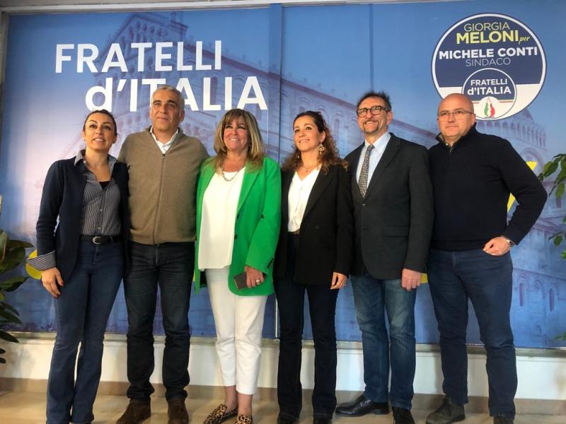 Presenti alla conferenza stampa, presso il comitato elettorale di Fratelli d’Italia in via Battelli a Pisa, la capogruppo uscente in Consiglio comunale Giulia Gambini, i consiglieri uscenti Maurizio Nerini e Francesco Niccolai, e la candidata al consiglio comunale Rachele Compare.