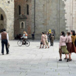 L’allestimento di piazza del Duomo è iniziato questa mattina verso le 6, quando sono arrivati alcuni elementi scenografici, tra i quali una carrozza trainata da un cavallo, macchine d’epoca, biciclette e un carrettino di gelati, insieme a molte comparse, vestite in abiti degli anni Quaranta. Agli attori e alla troupe non è mancato l’affetto di molti pistoiesi che, interessati e incuriositi, hanno seguito le telecamere accese sulla piazza.