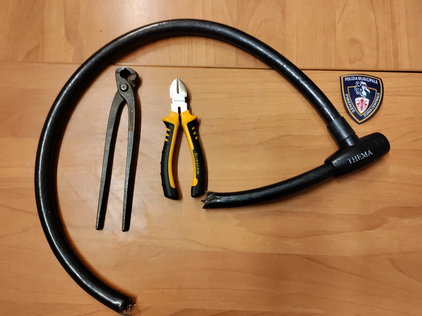 Trovato in possesso di strumenti atti a forzare lucchetti e di un'altra catena rotta, gli è stata sequestrata anche una terza bicicletta con cui aveva raggiunto Piazza del Mercato.