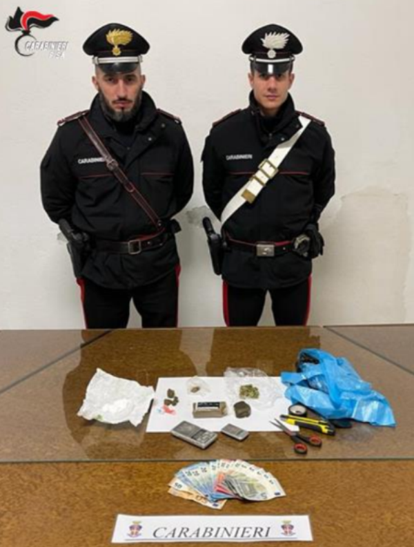 Sorpreso dai carabinieri mentre cede una dose di cocaina. È successo a Pontedera, nella serata di sabato 8 aprile durante un servizio di controllo del territorio, dove un uomo è stato arrestato in flagranza di reato e la sostanza stupefacente è stata sequestrata. La perquisizione, estesa presso il domicilio dell'uomo, ha permesso ai militari di rinvenire altre sostanze stupefacenti tra le quali hashish, marijuana e cocaina, per un totale di circa 200 grammi oltre alla somma in contanti di 355 euro, ritenuti provento dell'attività illecita. Il tutto è stato sottoposto a sequestro.