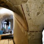 Erano impegnati nel recupero di una scala ‘segreta’, ancora inutilizzata, che dal Terrazzo di Saturno conduce fino al piano terra, sulla via dei Leoni. Durante le operazioni di ‘descialbo’ delle volte e delle pareti, ovvero nella rimozione accurata di tutti gli strati coprenti l’intonaco antico, i restauratori hanno riportato alla luce le superfici decorate a ‘grottesche’ risalenti all’incirca agli anni di poco successivi alla metà del ‘500, coeve a svariate pitture ubicate in altri ambienti di Palazzo Vecchio, attribuibili all’artista Marco Marchetti da Faenza.