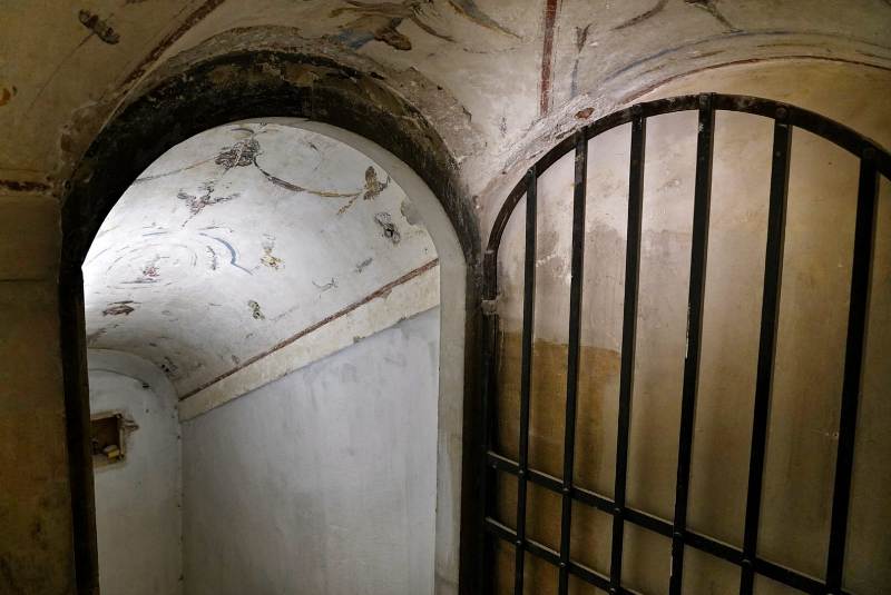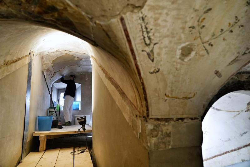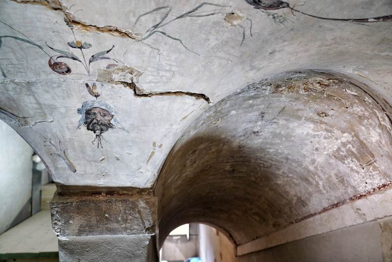 Erano impegnati nel recupero di una scala ‘segreta’, ancora inutilizzata, che dal Terrazzo di Saturno conduce fino al piano terra, sulla via dei Leoni. Durante le operazioni di ‘descialbo’ delle volte e delle pareti, ovvero nella rimozione accurata di tutti gli strati coprenti l’intonaco antico, i restauratori hanno riportato alla luce le superfici decorate a ‘grottesche’ risalenti all’incirca agli anni di poco successivi alla metà del ‘500, coeve a svariate pitture ubicate in altri ambienti di Palazzo Vecchio, attribuibili all’artista Marco Marchetti da Faenza.