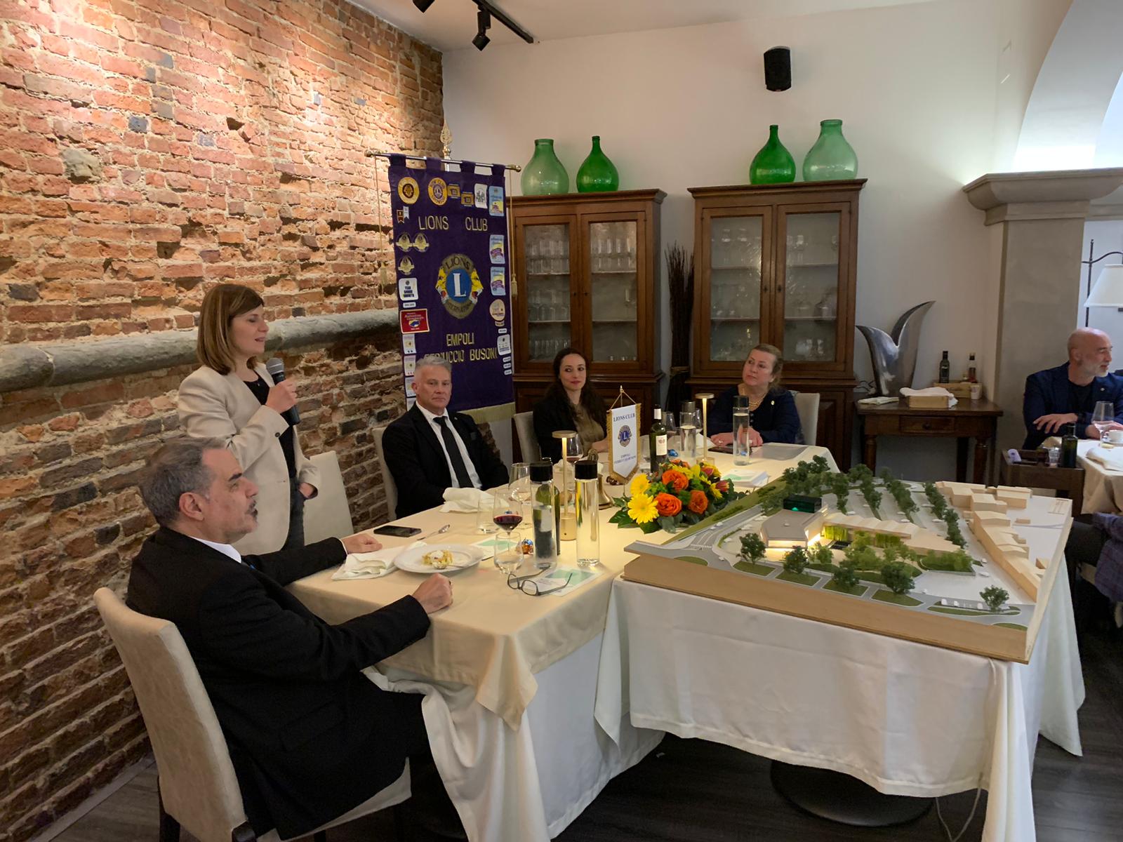 In data 12 aprile 2023 il Lions Club Ferruccio Busoni Empoli, presso la sua sede in Empoli, ha avuto il privilegio ed il piacere di ospitare la Sindaca di Empoli Brenda Barnini e l’Assessore alla Cultura Giulia Terreni. La Sindaca ha presentato e illustrato ai presenti il plastico del teatro “Il Ferruccio”.