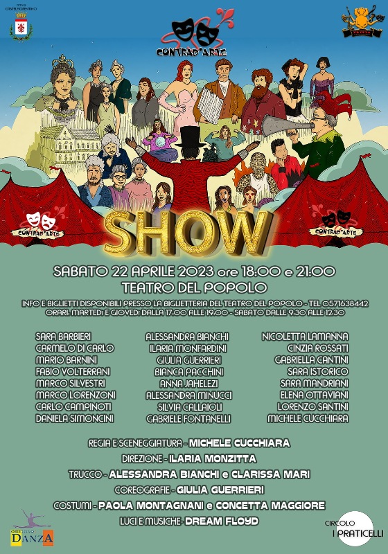 Di fronte al sinistro proposito dei “nobili”, i “diversi” reagiranno nei confronti del palazzo al grido “tutti siamo uguali, e tutti hanno lo stesso diritto di vivere una vita felice” avvalendosi dell’aiuto di un istrionico Mike di Castello e Mario “il giornalaio”, con un esito non del tutto scontato. Lo spettacolo “Show” è stato reso possibile grazie al patrocinio del Comune di Castelfiorentino, l’associazione Trivia aps, la scuola di danza “Obiettivo Danza”, il Circolo Praticelli, la Fondazione Teatro del Popolo di Castelfiorentino, il team service Dream Floyd e il contributo tecnico di Diego Calvetti.
