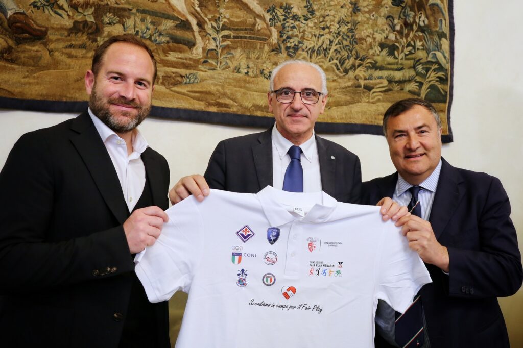 E' stato presentato stamani in Palazzo Medici Riccardi #fairplayeducaretifando, innovativo progetto della Città Metropolitana di Firenze per la correttezza nel gioco e l’educazione a un tifo sano, giunto alla seconda edizione. Sono intervenuti Nicola Armentano, consigliere delegato allo Sport della Metrocittà (che ha parlato di una "bella sfida educativa", il presidente del Coni Toscana Simone Cardullo e Antonello Biscini, presidente della fondazione Fair Play Menarini, con Joe Barone per la Fiorentina e i rappresentanti dell’Empoli, della Savino del Bene e Bisonte Volley e con loro i presidenti di Associazione Azzurri Italia e Veterani dello Sport.