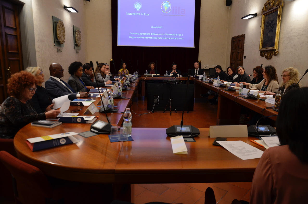 È un accordo quadro e di rilievo strategico quello firmato martedì 18 aprile in Rettorato tra l’Università di Pisa e l’Istituto Italo-Latino Americano (IILA), l’organizzazione intergovernativa fondata nel 1966 di cui fanno parte l’Italia e le venti Repubbliche dell’America Latina, che rappresenta uno dei principali strumenti di dialogo politico tra Italia, Europa e America Latina. Il documento è stato firmato dal rettore Riccardo Zucchi e da Antonella Cavallari, segretario generale dell’IILA, alla presenza dei rappresentanti delle ambasciate latinoamericane di Cile, Colombia, Costa Rica, Cuba e Haiti, del prorettore per la Cooperazione e le Relazioni Internazionali, Giovanni Federico Gronchi, e di alcuni docenti e personale dello staff dell’ufficio Internazionale.